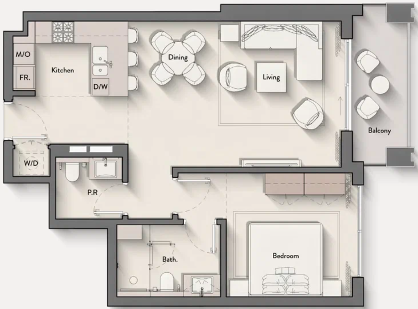 For sale apartment with 1 bedroom in Dubai. Hillmont Residences is being built in the Jumeirah Village Circle neighborhood.