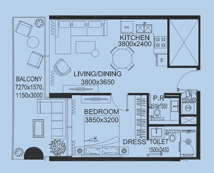 Апартаменты 1 br, ЖК Wow Tower, DubaiLand, Дубай