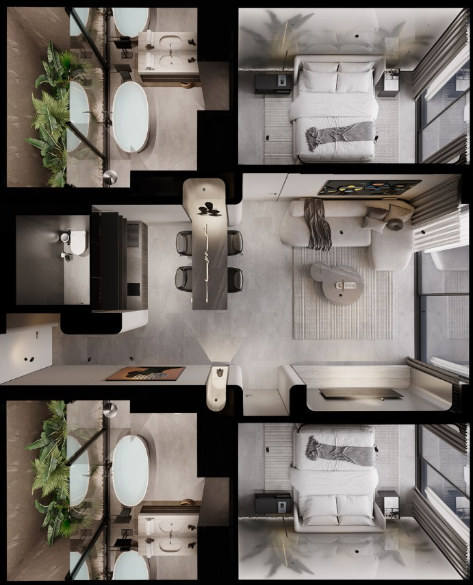 Basic equipment: Finishing, furniture, appliances, design items, etc. The interior is made with natural materials. There is a swimming pool/rooftop.