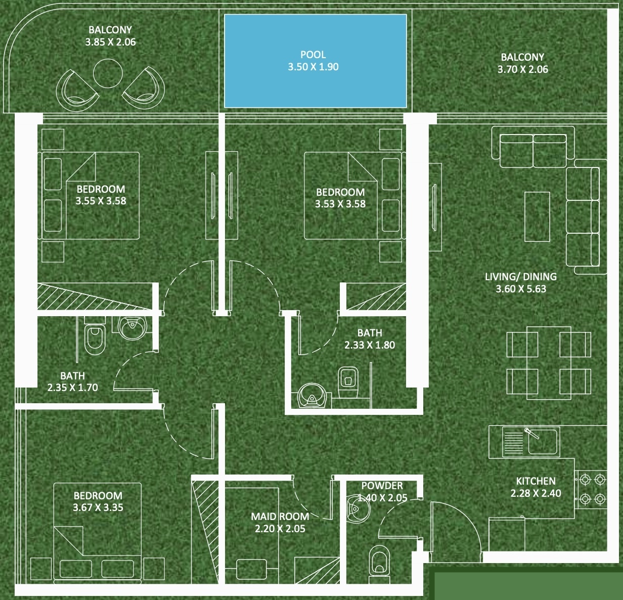 Basic equipment: all apartments are designed with functionality and comfort in mind and are offered fully furnished. Some residences have a private swimming pool. High quality finishes and panoramic windows offering expansive views of Dubai Sports City are standard in all apartments.
