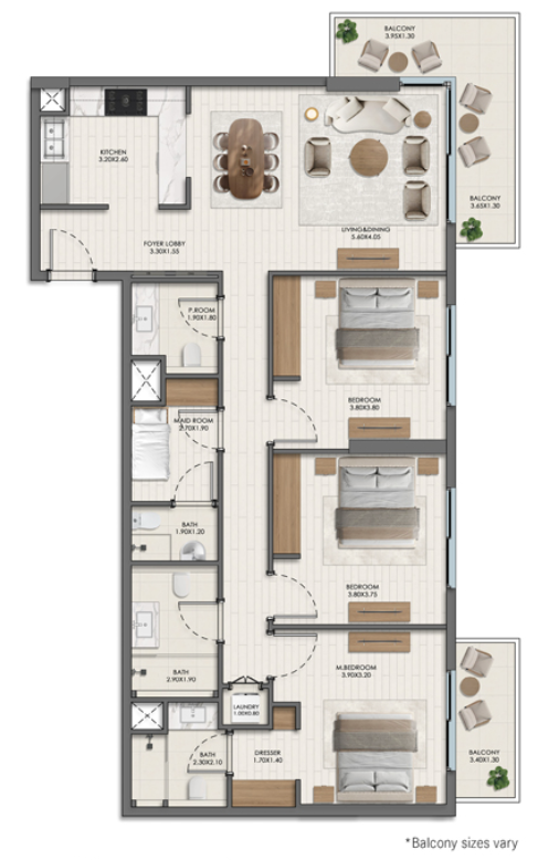Apartment 3 br, Evelyn project, Town Square, Dubai