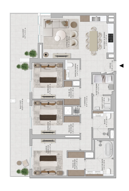 Infrastructure of the complex: swimming pool, common area, outdoor sports area, paddle tennis court, botanical garden, outdoor children’s playground, indoor children’s playground, barbecue areas.