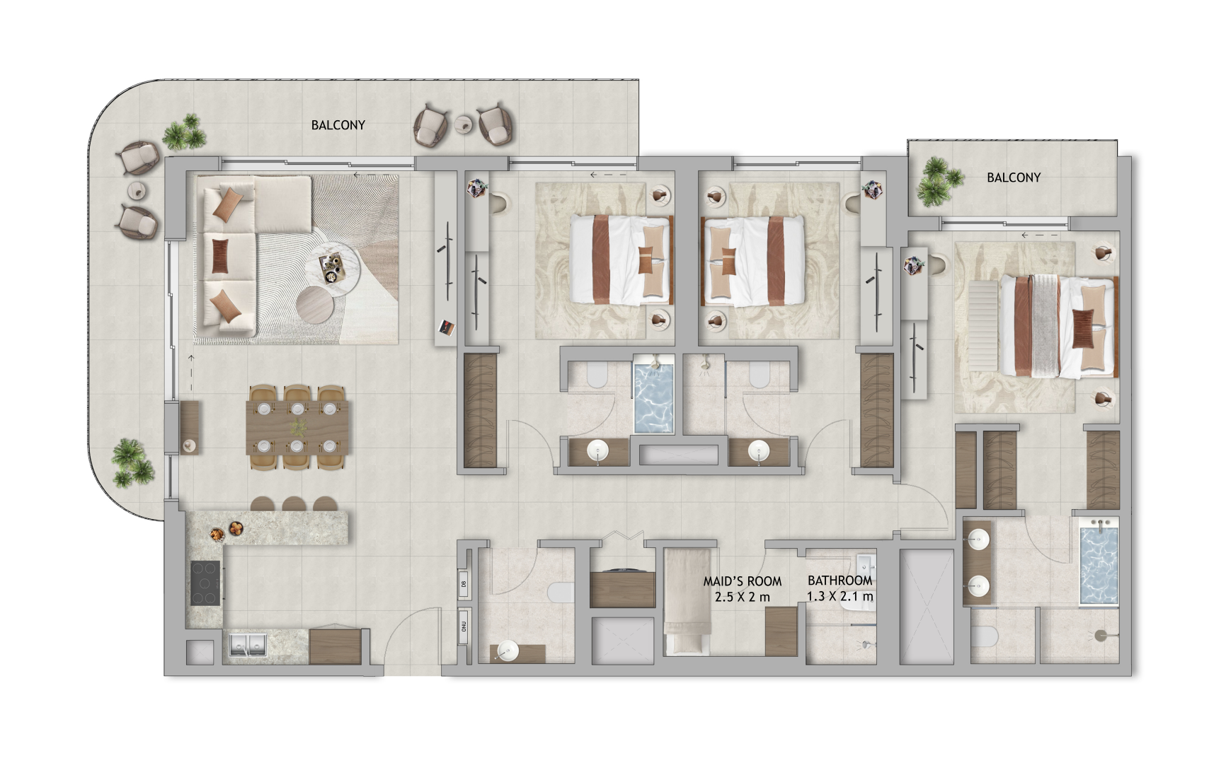 Basic equipment: The interiors are designed to reflect an elegant harmony between sophisticated lifestyle and organic inspiration. Homes are filled with natural light and finished with high-quality materials, offering a choice of light or dark color palettes inspired by the natural landscape. Kitchens feature engineered stone countertops, contemporary cabinetry and porcelain finishes, while bathrooms feature high-quality ceramic fixtures and brushed bronze fittings. Flooring, wall treatments and bespoke furniture combine durability and warmth to create interiors that feel substantial, calm and effortlessly sophisticated.