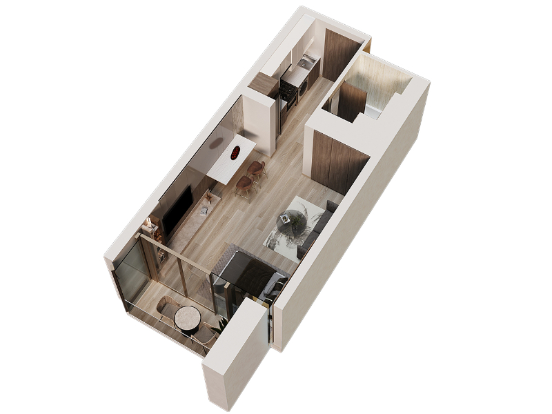 Studio apartments are available for sale in the ME DO RE 2 complex under construction in the Jumeirah Lakes Towers area.