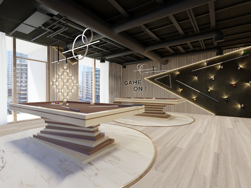Complex infrastructure: swimming pool, jacuzzi, sunbathing areas, golf simulator, handmade billiard tables, gym with premium Technogym equipment, yoga studio.