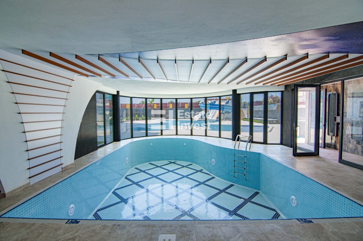 Complex infrastructure: outdoor and indoor pools, a fitness center, a sauna, a Turkish bath, a games area, security, and landscaped grounds.