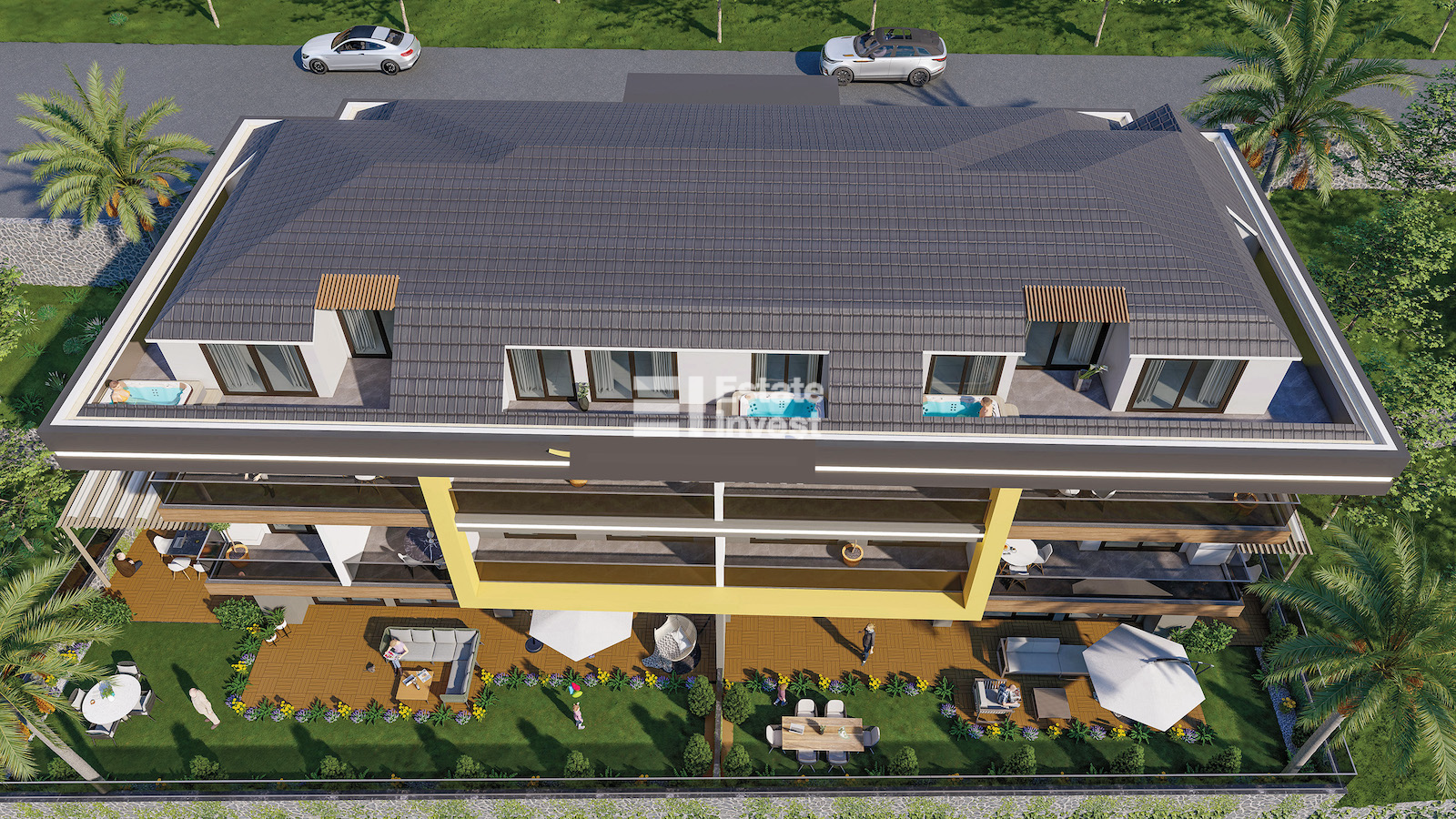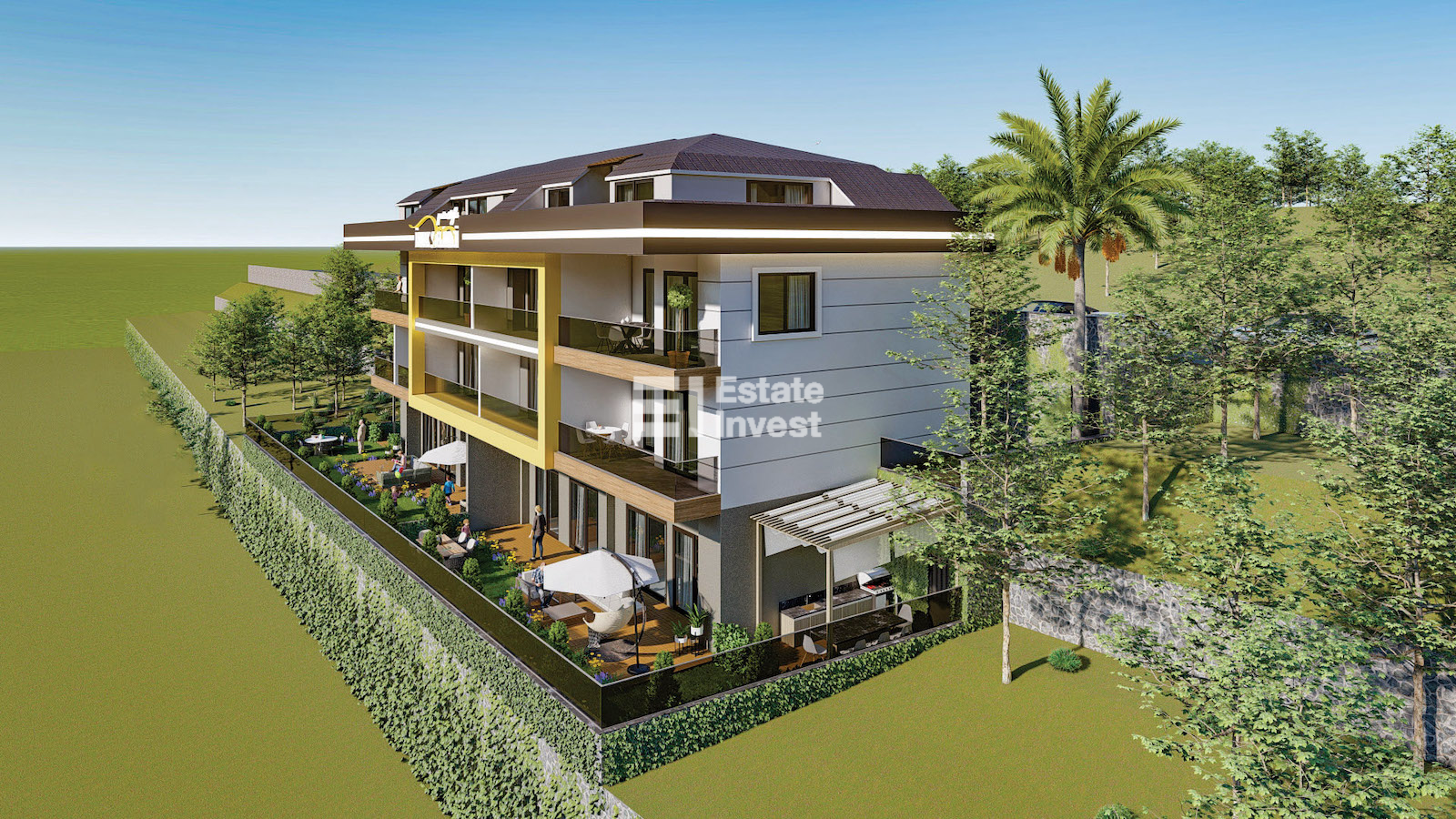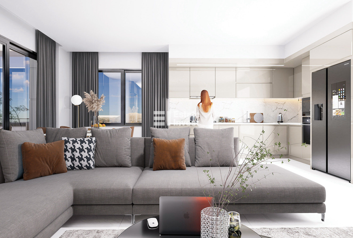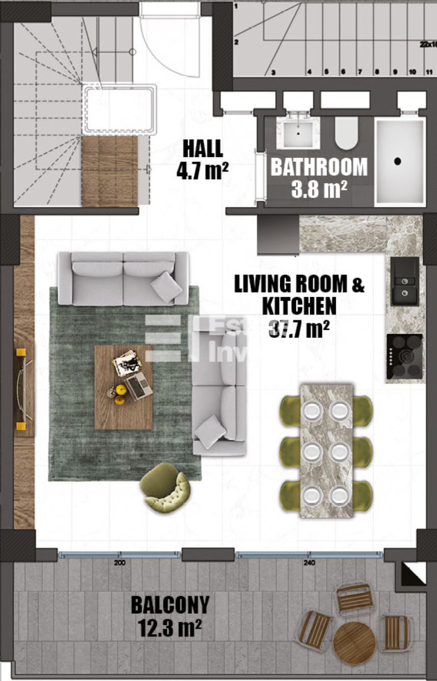 The apartments are delivered with finishing, kitchen set and sanitary ware in the bathrooms.