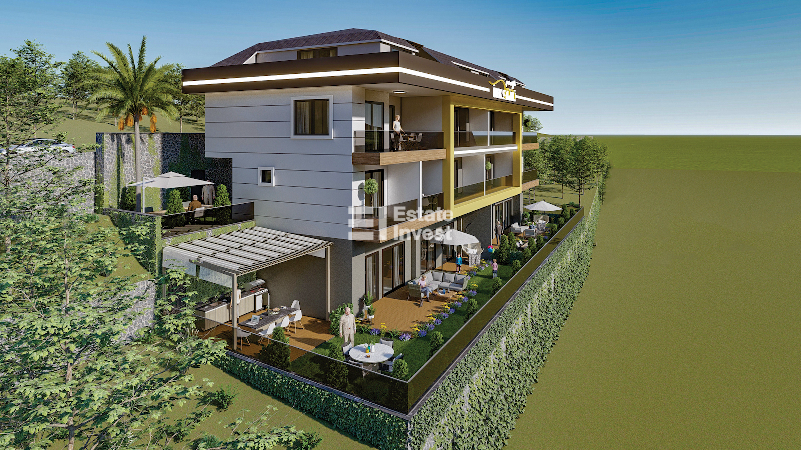 Complex infrastructure: outdoor parking, barbecue, garden, gazebos.