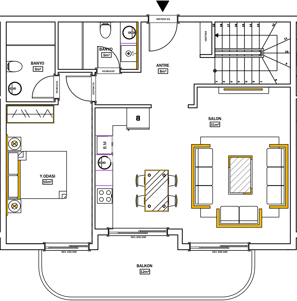 The apartment will be installed heat and sound insulation, made of high quality materials. Smart Home system and HGS system (for parking) will be implemented. Entrance doors will be steel, interior doors will be lacquered or MDF. Door and window joinery will be made of anthracite colored PVC material with insulation roving and gasket system. Ceramic and vitrified clay products will be manufactured in Grade 1.