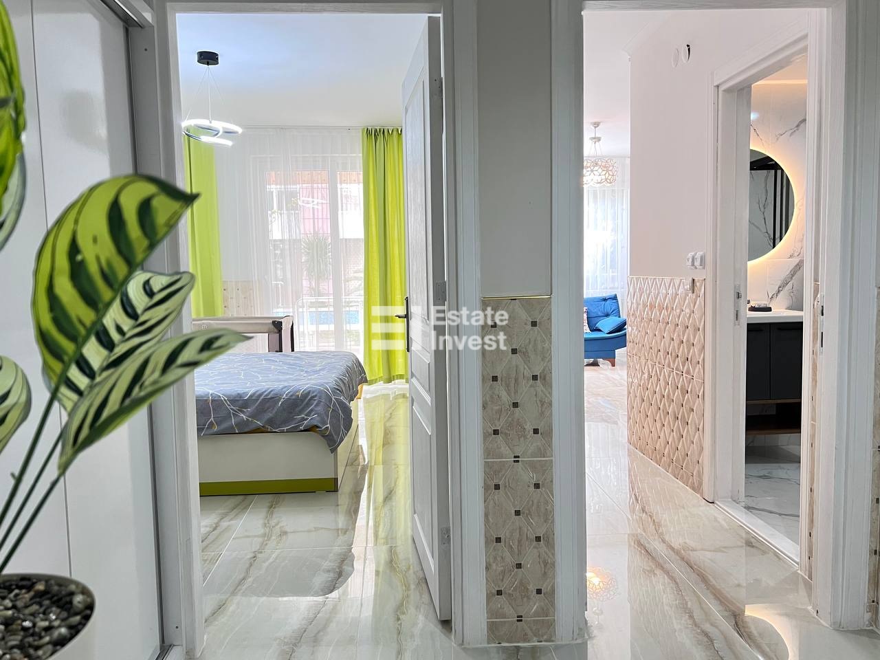 Duplex with two entrances and access to the pool. It can be used as one large apartment for the whole family or as two independent apartments 2+1 (with separate kitchens and bathrooms). If you close the stairway, you get a completely independent apartment. You can also combine living and renting – you can live in one apartment and rent the other one.