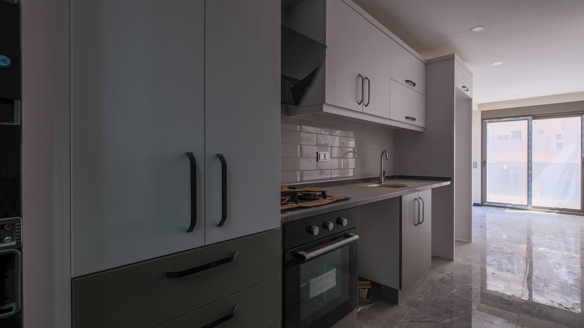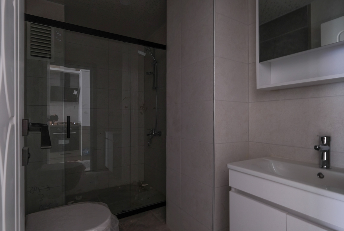 Apartment with finishing, built-in kitchen set and sanitary ware in the bathroom.