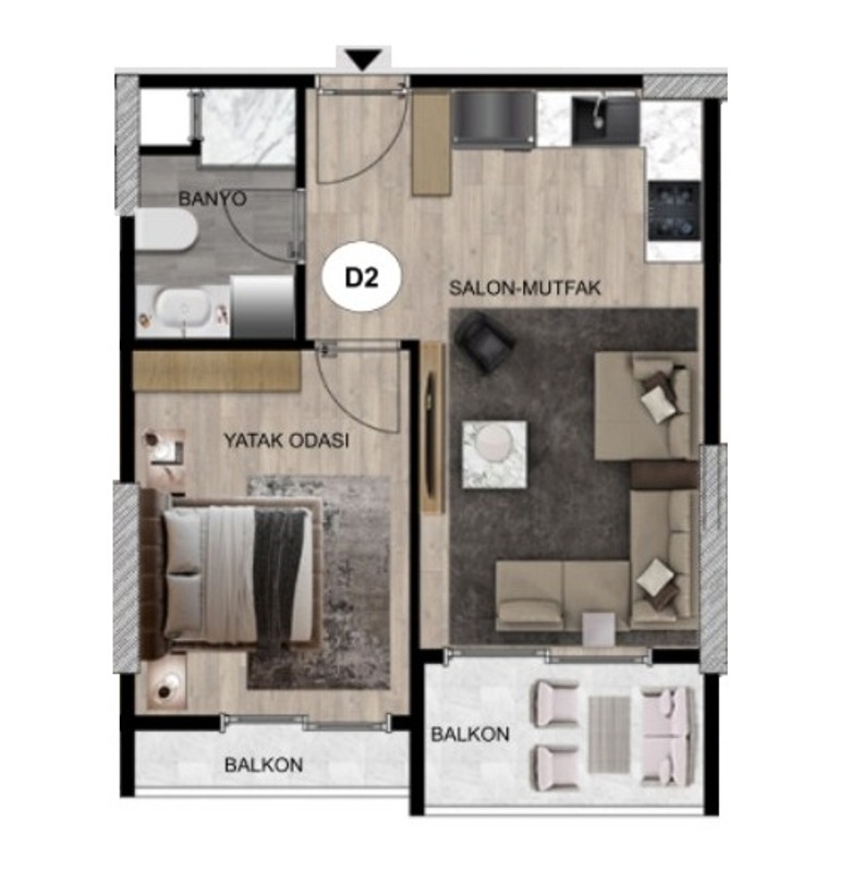 Format: kitchen-living room and 1 bedroom.