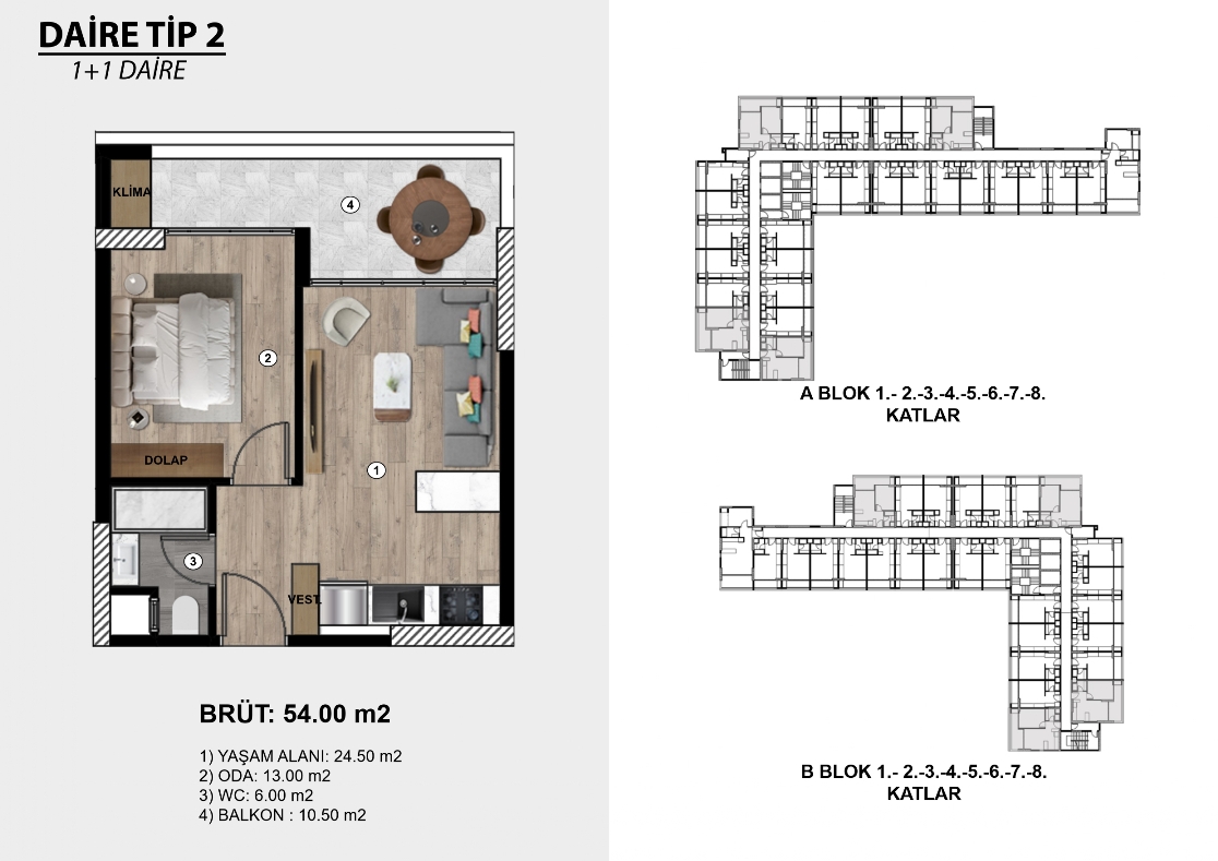 For sale apartment 1+1 from the developer in a complex under construction, Tomyuk, Mersin.
