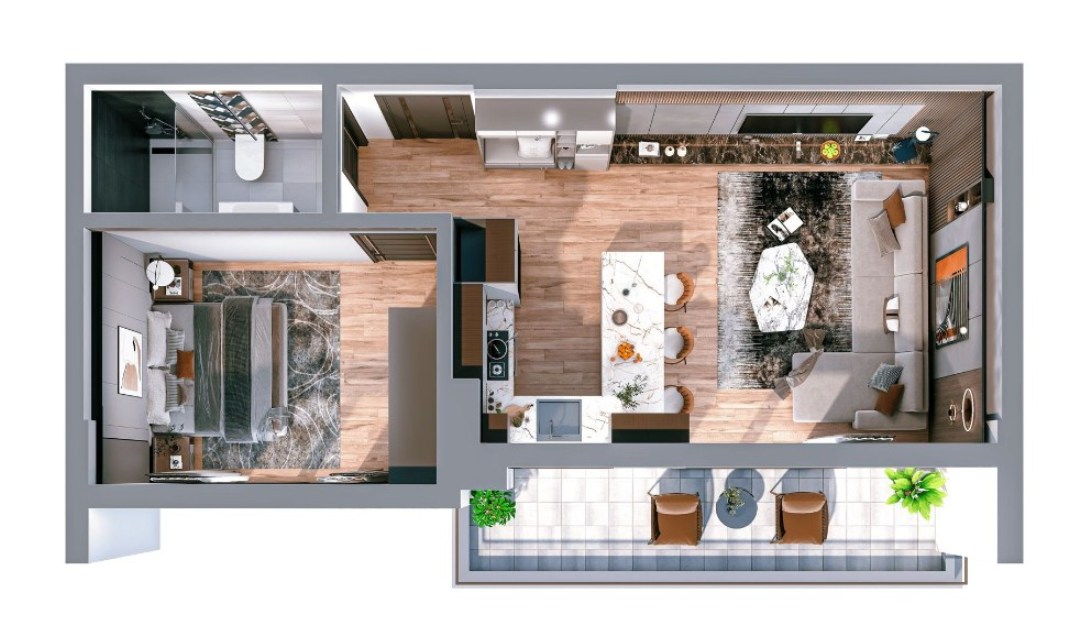 The apartments are delivered with finishing: suspended ceiling, kitchen cabinets, closet, bathroom cabinets, steel exterior door, windows made of pvc and heat-resistant glass, walls are painted with water-resistant paint, quality plumbing, shower cabin.