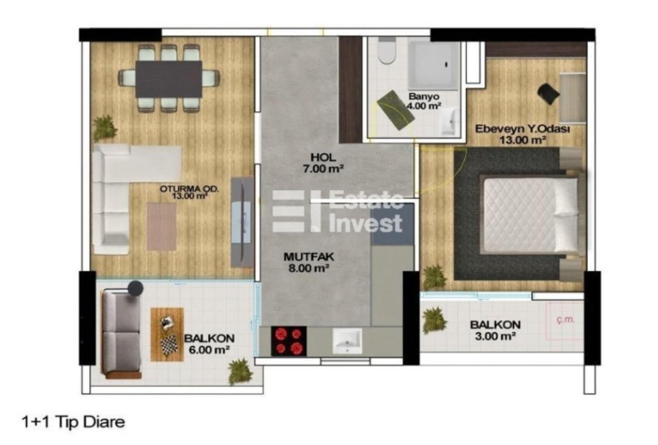 For sale apartment 1+1, Tomyuk, Mersin.