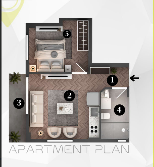 The apartments are delivered with finishing, built-in kitchen set and complete bathroom. The apartments are equipped with smart home systems, heated floors, gas boilers, electric blinds, and air conditioning in the living rooms. The finishes include lacquered doors (CNC), spot lighting and LED lighting, as well as kitchen cabinets. Walk-in closets are provided.