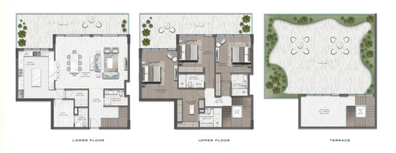 Basic equipment: all apartments offer a balcony, fitted closets, office area and fitted kitchen. Through panoramic windows, residents will enjoy views of golf courses and green spaces. Owners of the townhouses will have the opportunity to relax in their own garden, use the laundry room, restroom, walk-in closets in the bedrooms and balcony. The residences will be designed in a minimalist style, using calm, warm tones that blend with earthy finishes.