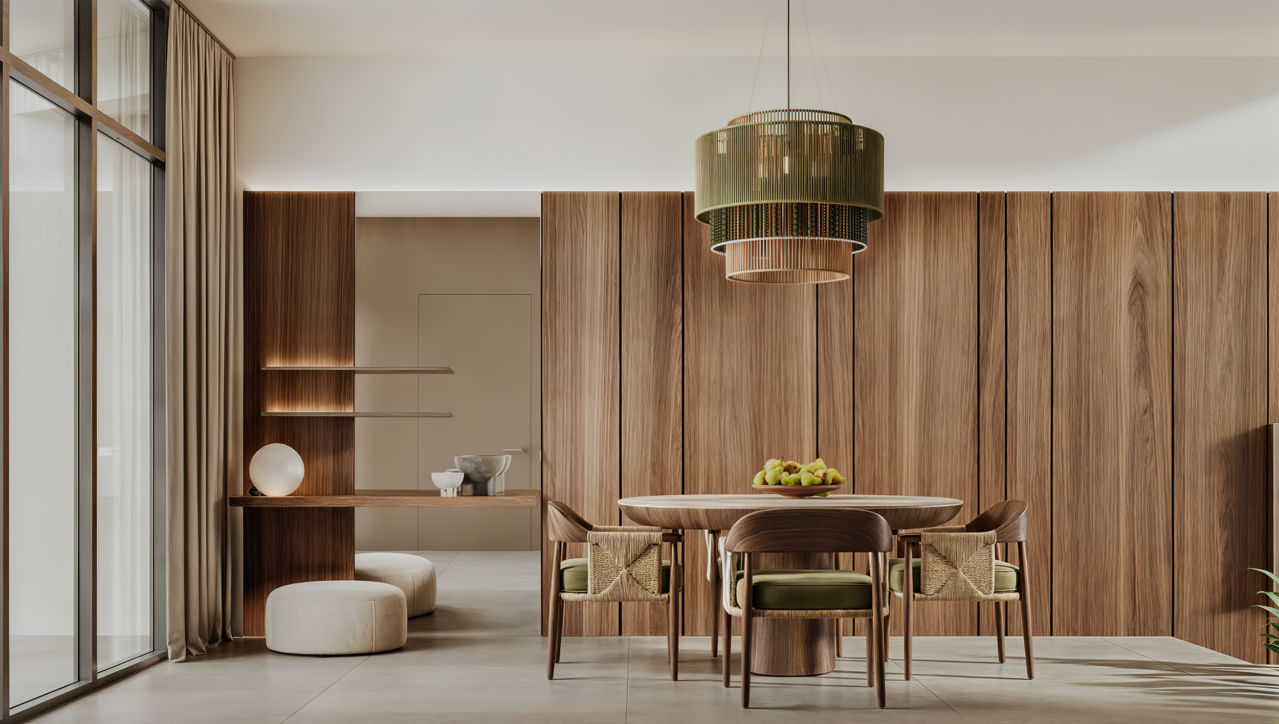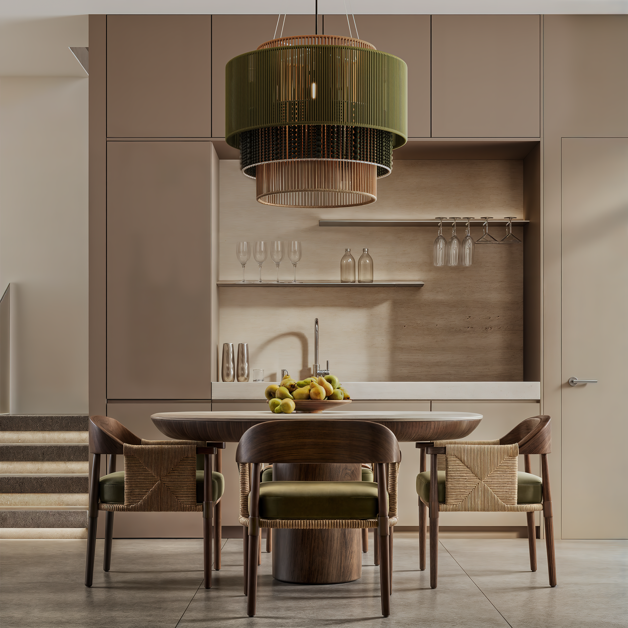 Basic: Interior decoration and full furnishing including kitchen set, beds, sofas, appliances and garden furniture (with roofline if available).