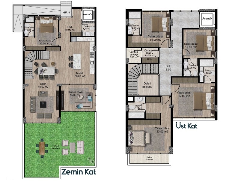 Villas are delivered with finishing, built-in kitchen set and sanitary ware in bathrooms.