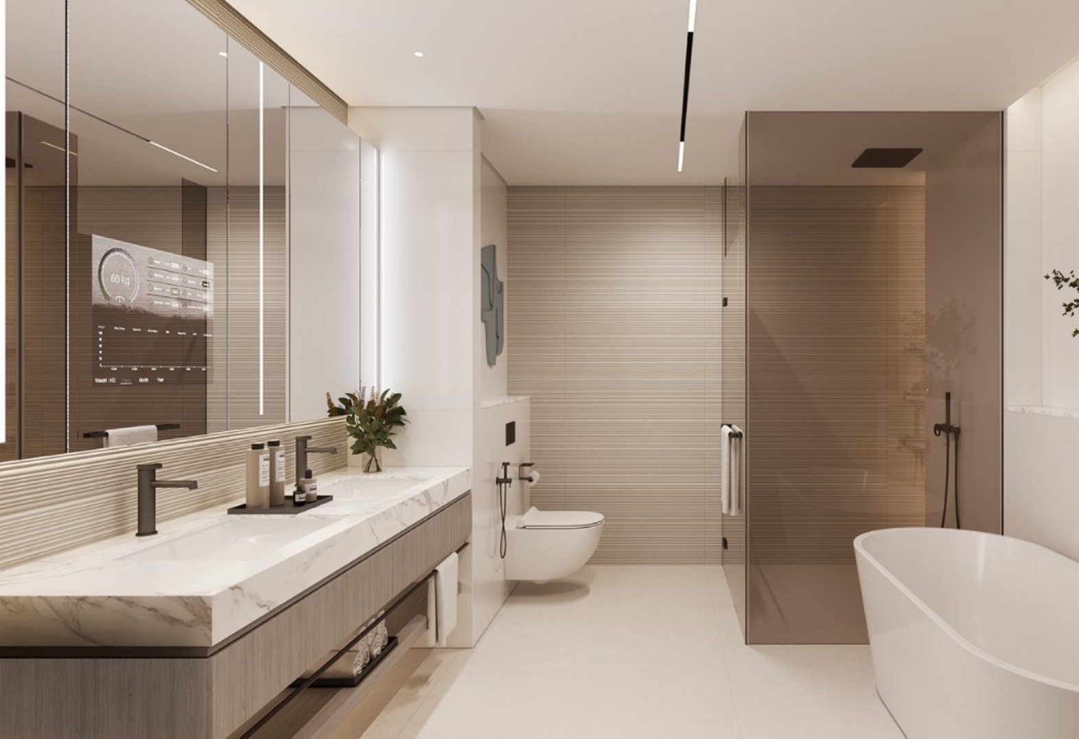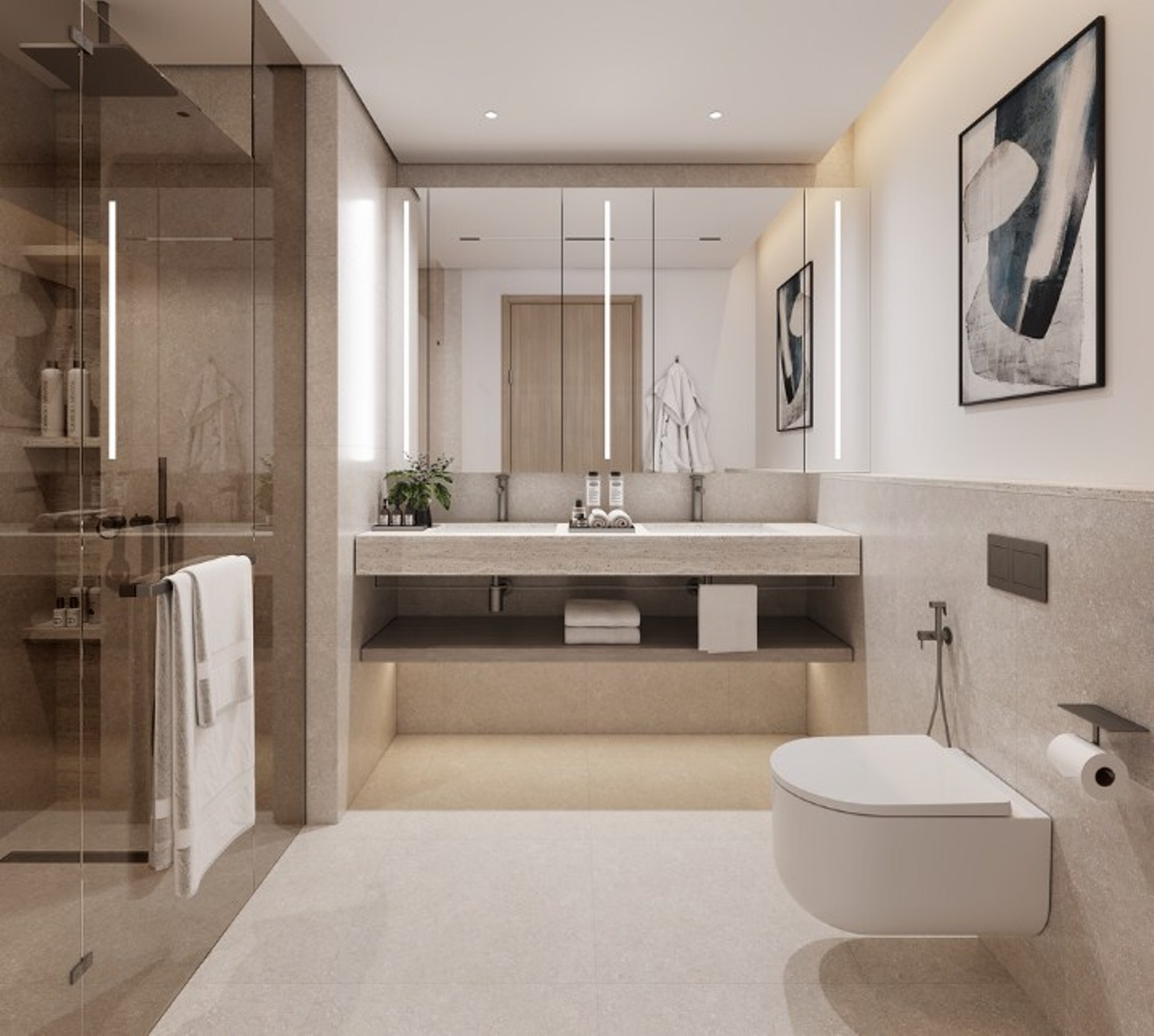 Базовая комплектация: апартаменты сдаются с высококачественной отделкой, меблированными кухнями и сантехникой в санузлах.