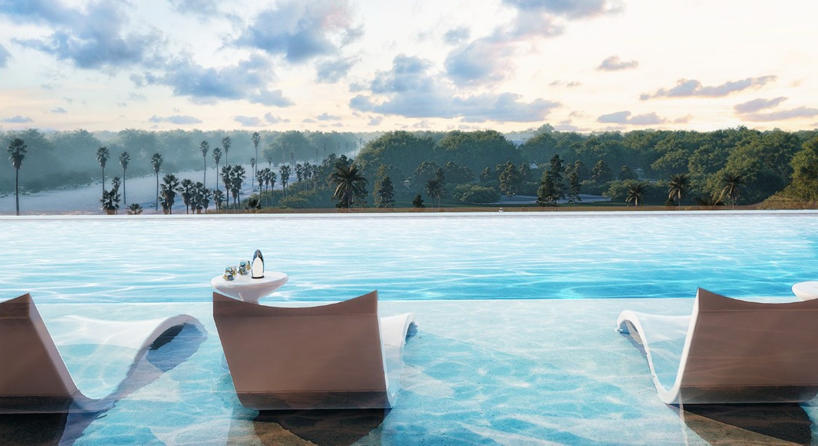 Инфраструктура комплекса: площадка для игры в падел, симулятор гольфа, мужской и женский спа-центры, оборудованные массажными кабинетами, парными и саунами. Для семей застройщик предусмотрел просторную детскую игровую зону и плескательный бассейн.