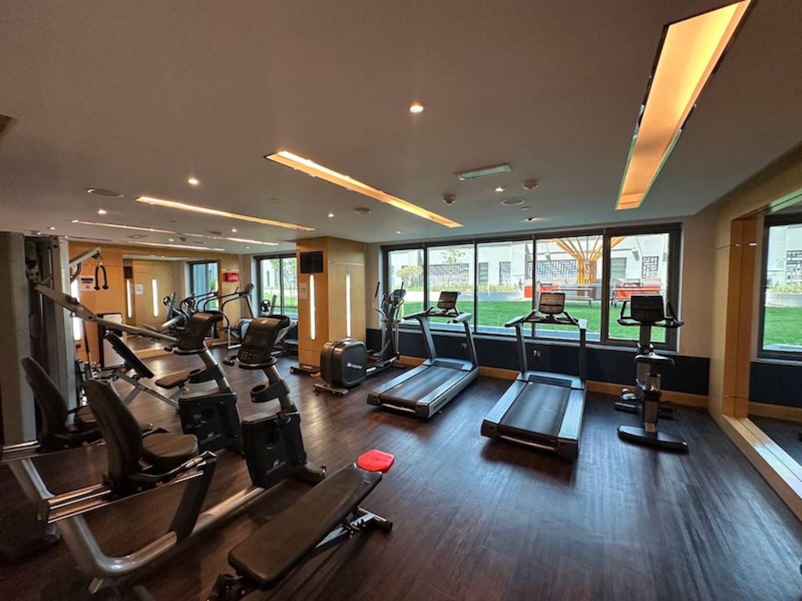 Инфраструктура комплекса: полностью оборудованный тренажерный зал и фитнес-центр, крытая джакузи и спа, круглосуточная охрана и консьерж, крытая парковка, розничные магазины на первом этаже.
