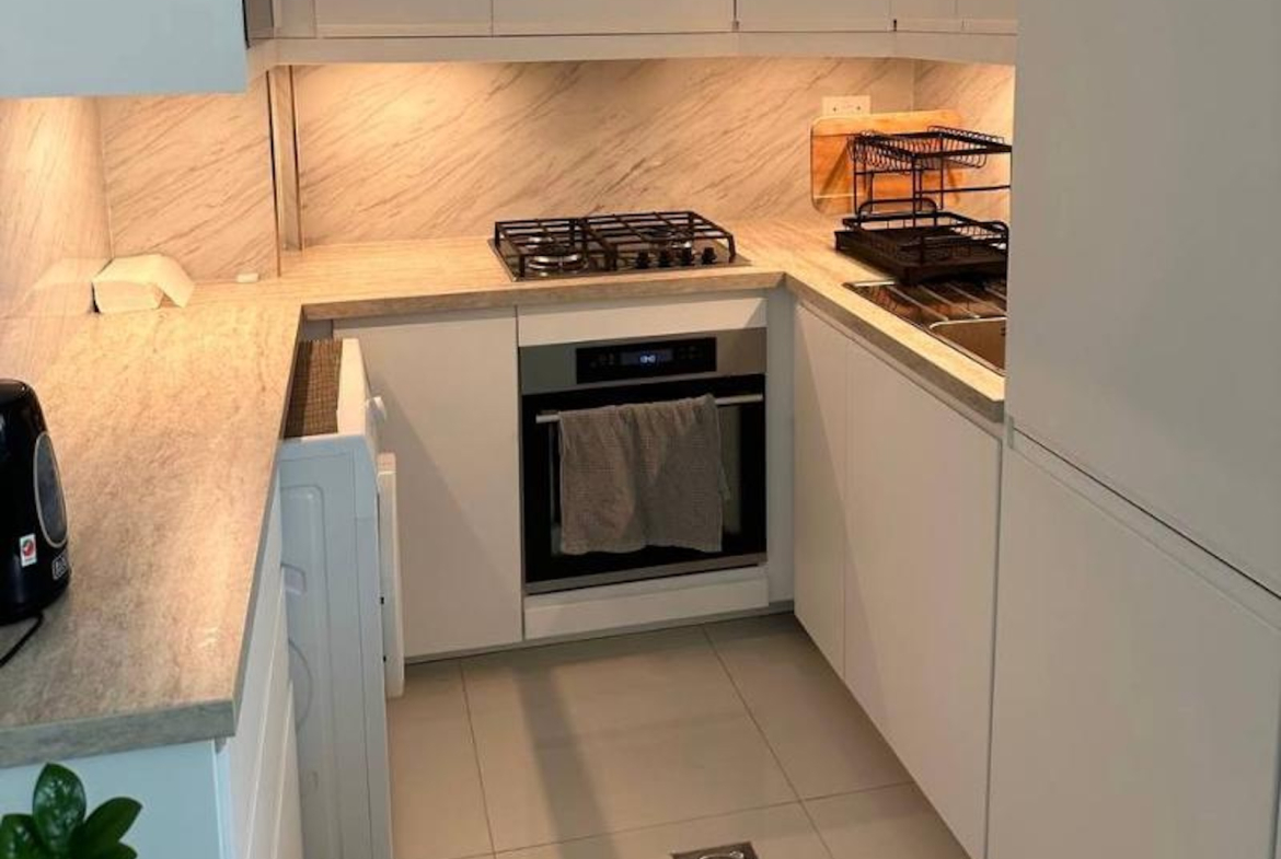 Базовая комплектация: планировка: Просторная 1-комнатная комната с отдельной гостиной и обеденной зоной. Открытая кухня со встроенной техникой (газовая плита, духовка, холодильник, микроволновая печь). Большие окна с большим количеством естественного света. Встроенный шкаф. Современная ванная комната с ванной. Выделенный уголок для работы/учебы.