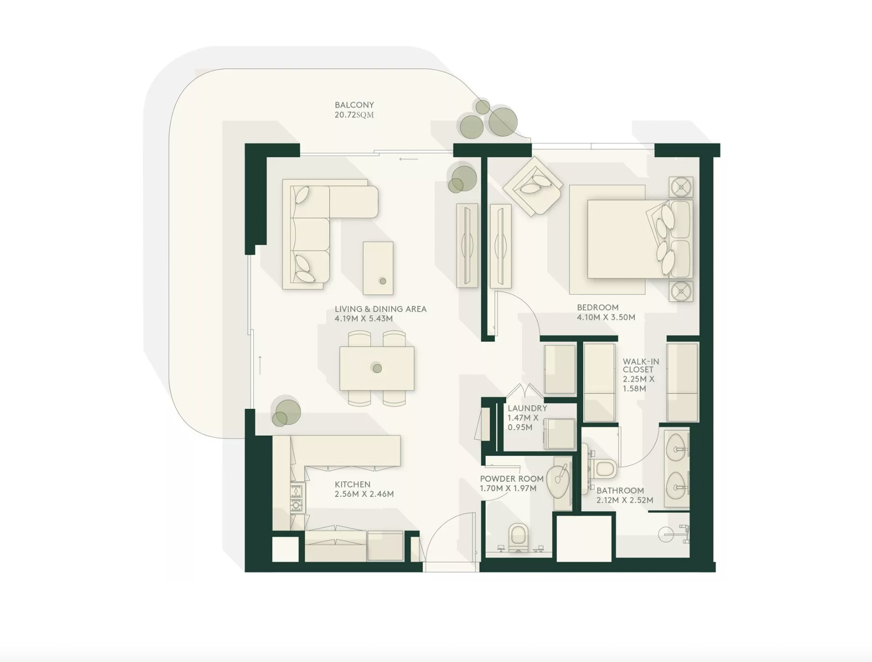 В продаже апартаменты 1 br в строящемся комплексе Gardenia Iris в районе ALDAR Abu-Dhabi.