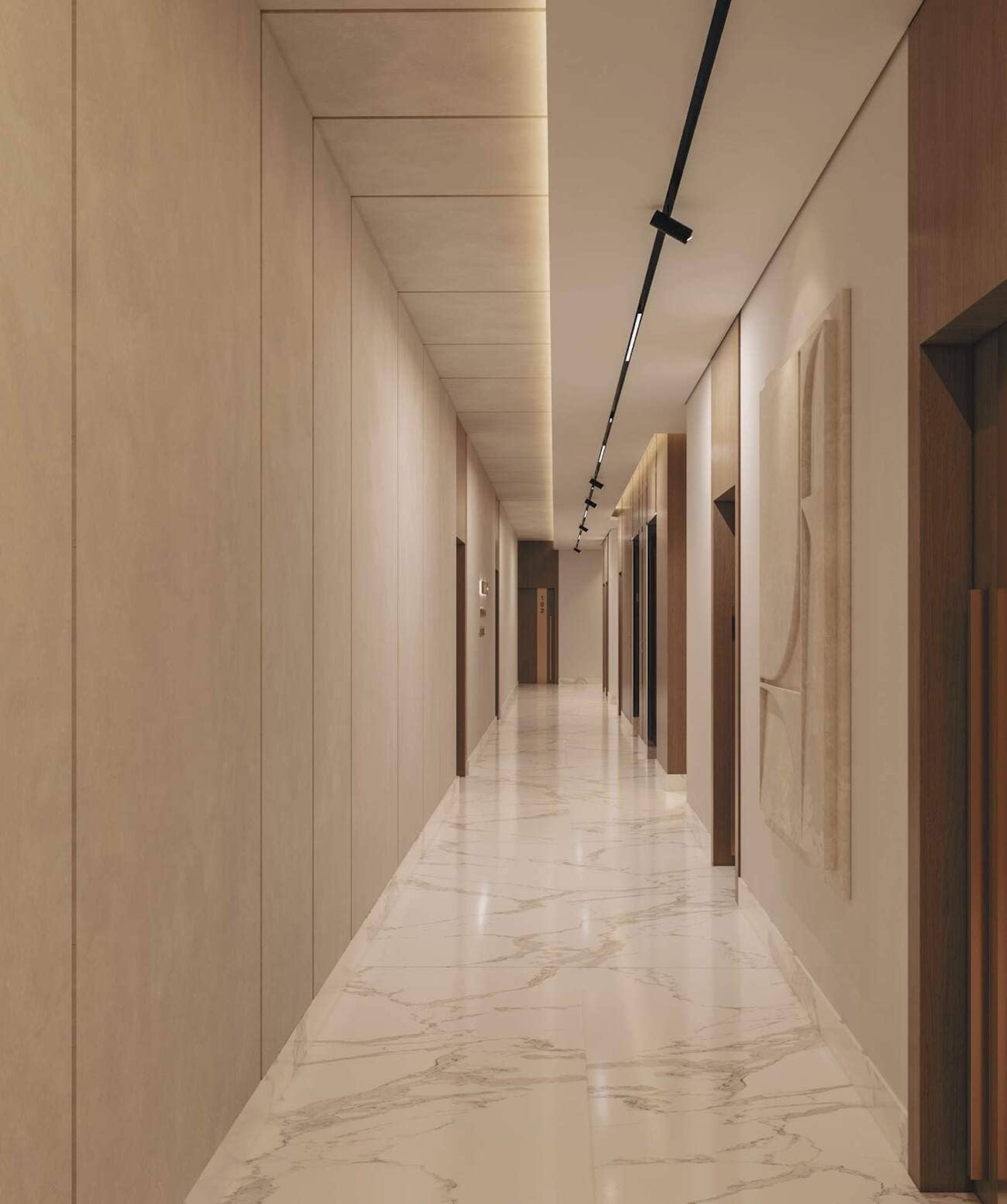 Базовая комплектация: современная отделка с использованием высококачественных материалов и системы «умный дом». Полностью оборудованная кухня: встроенная газовая плита с вытяжкой, газовая духовка, микроволновая печь, стиральная/сушильная машина, посудомоечная машина, холодильник и морозильник, полный морозильник (только 2bhk).