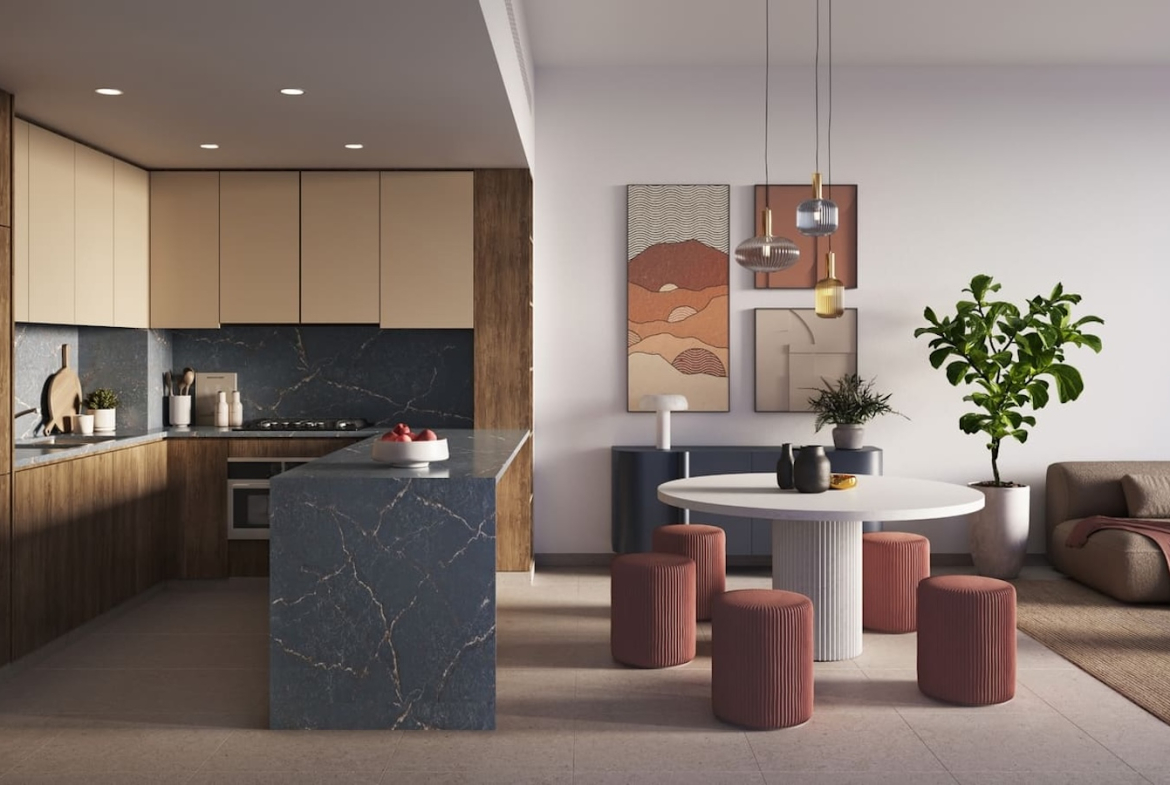 В продаже апартаменты 1 br от застройщика в строящемся ЖК Ghaf Woods в районе Majan.