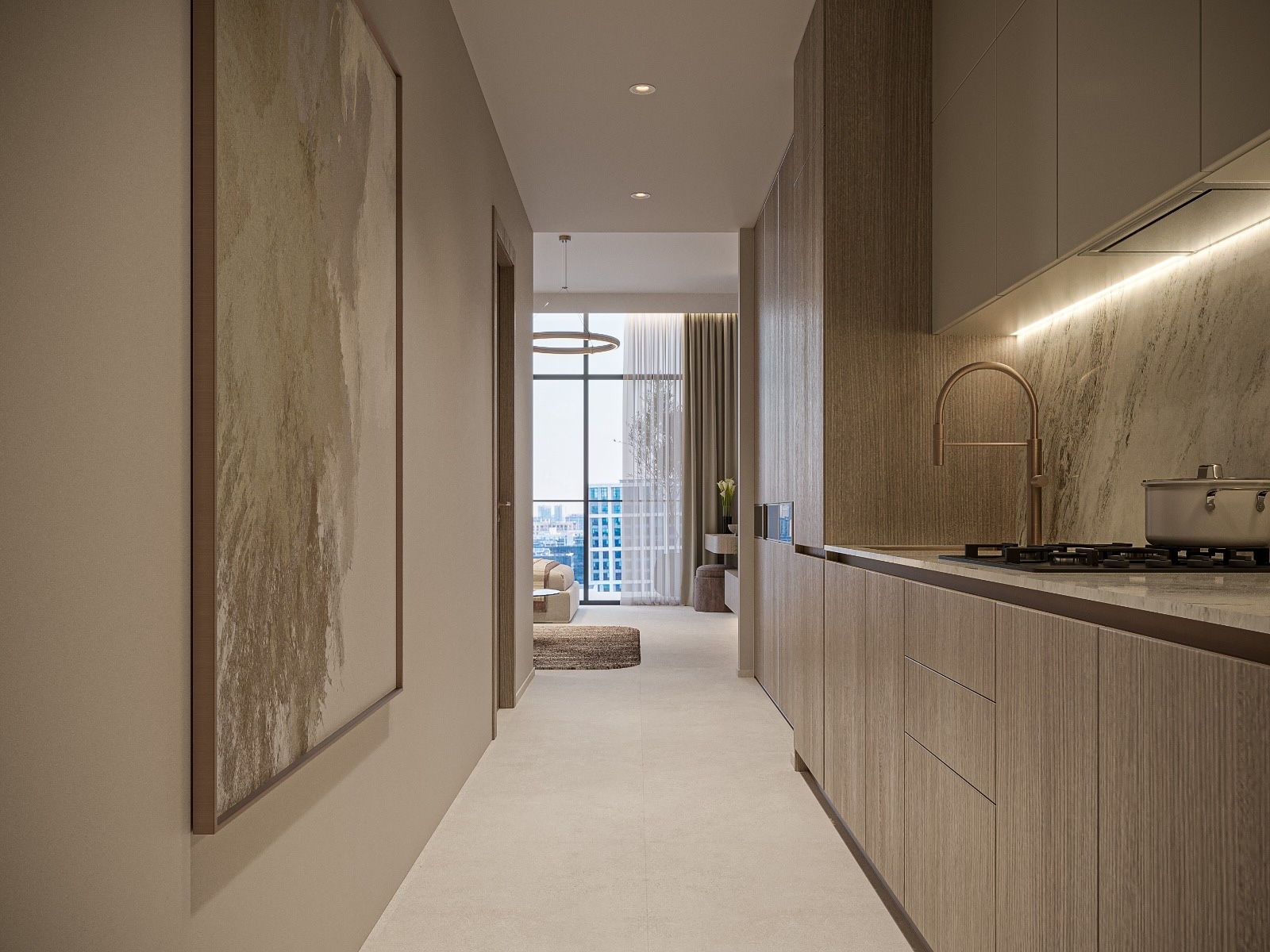 Базовая комплектация: современная отделка с использованием высококачественных материалов. Оборудованные кухни с бытовой техникой Bosch.