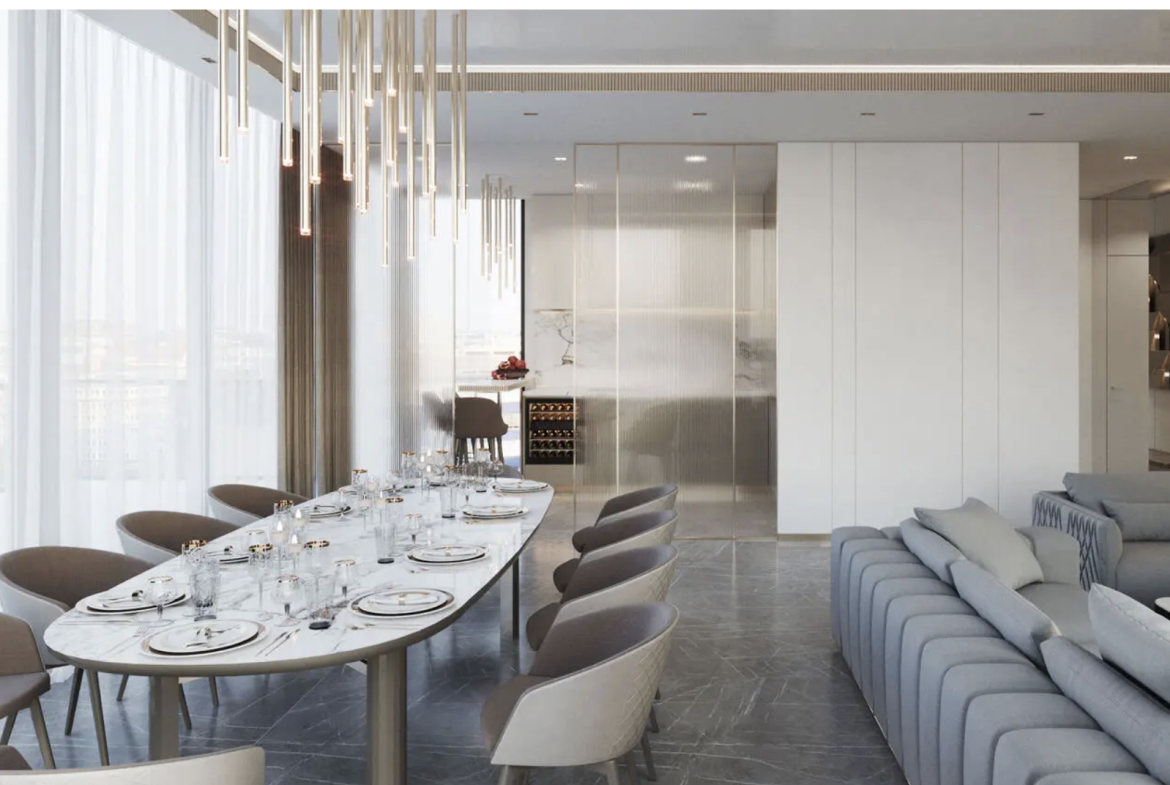 Базовая комплектация: современная отделка с использованием высококачественных материалов. Кухня оборудована бытовой техникой Smeg. Квартиры с 1 и 2 спальнями сдаются с профессионально подобранной мебелью. Подбор мебели для квартир с 3 спальнями, дуплексов и пентхаусов осуществляется по индивидуальному заказу.