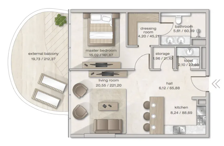 Апартаменты 1 br, ЖК Zephyra, Dubai Islands, Дубай