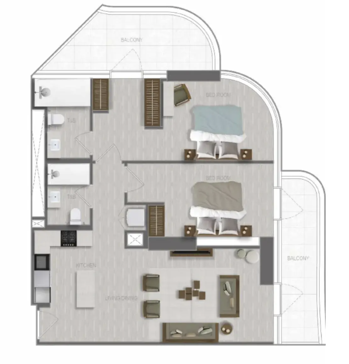 Апартаменты 2 br, ЖК A1LA RESIDENCE, Абу-Даби