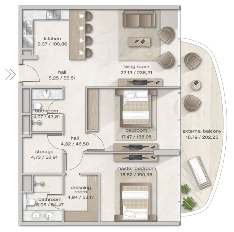 Апартаменты 2 br, ЖК Zephyra, Dubai Islands, Дубай