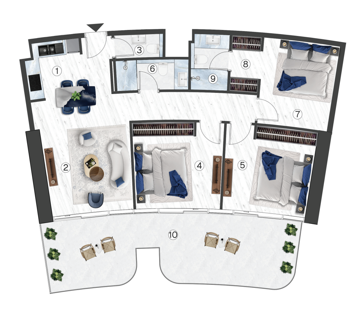 Базовая комплектация: все резиденции полностью меблированы, отражая изысканный вкус и современную функциональность в каждом элементе. Кухни элегантно спроектированы и полностью оборудованы, а высококачественные материалы и утонченная отделка придают интерьерам теплоту и современный стиль. От напольного покрытия до фурнитуры, каждое пространство оформлено с вниманием к деталям, предлагая готовый к заселению дом, отличающийся комфортом, качеством и непринужденной роскошью.