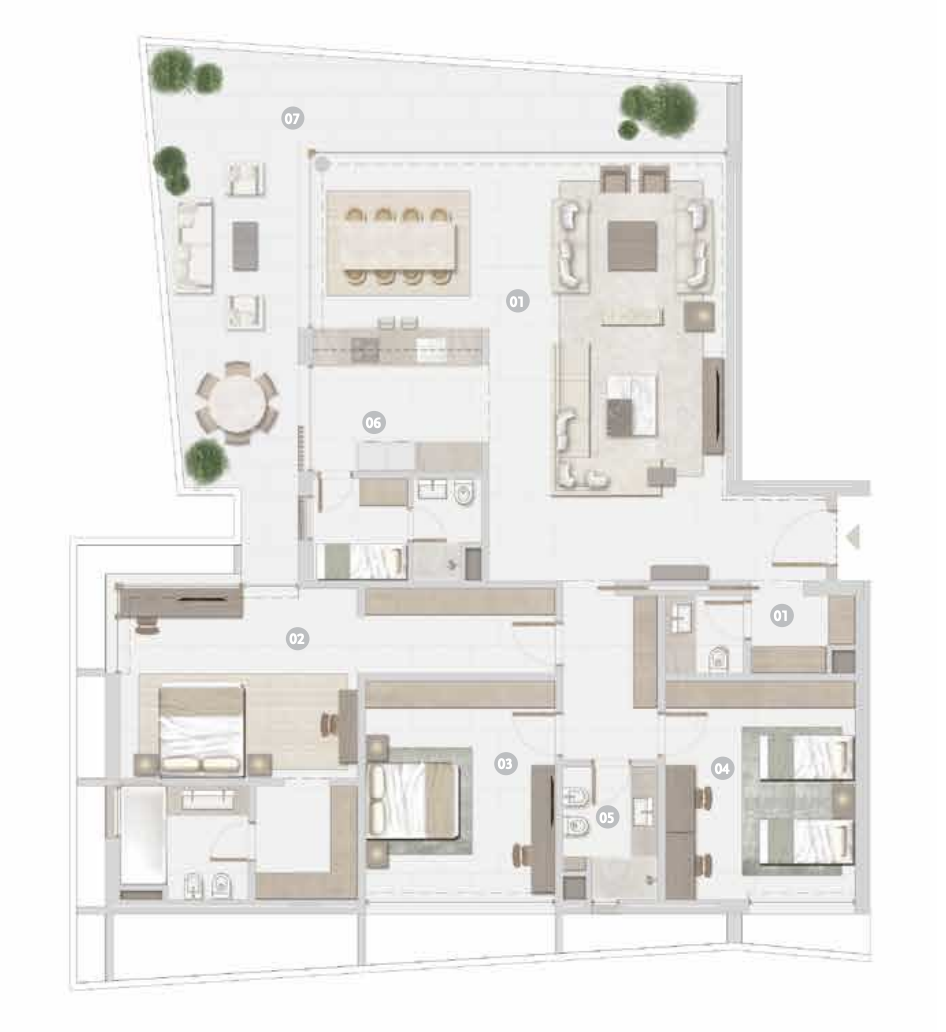 Базовая комплектация: полы: керамические полнотелые полы первого выбора или аналогичные материалы. Стены: эмульсионная краска Потолок: гипсокартон с эмульсионной краской и точечным освещением. Плинтуса: керамика первого выбора или аналогичные материалы. Все ванные комнаты оборудованы тумбами, в том числе с массивными столешницами и умывальниками под столешницей, или аналогичными сертифицированными изделиями. Кухня оборудована бытовой техникой. Шкафы: цельные каркасные и панельные, меламиновые внутренние поверхности и шпон на выбор или аналогичные утвержденные варианты. Столешницы: гранитные столешницы с мойкой из нержавеющей стали и выдвижным смесителем или их аналоги.
