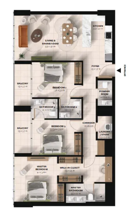 Апартаменты 3 br, ЖК WAADA, Dubai South, Дубай