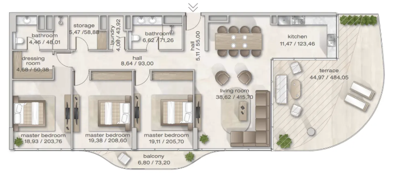 Апартаменты 3 br, ЖК Zephyra, Dubai Islands, Дубай