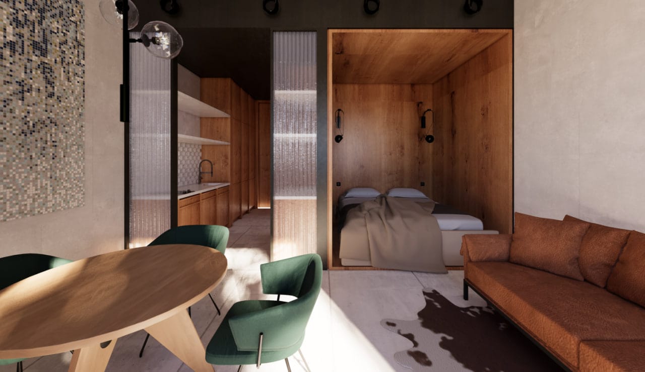 Базовая комплектация: современная отделка с использованием высококачественных материалов. Оборудованная кухня.