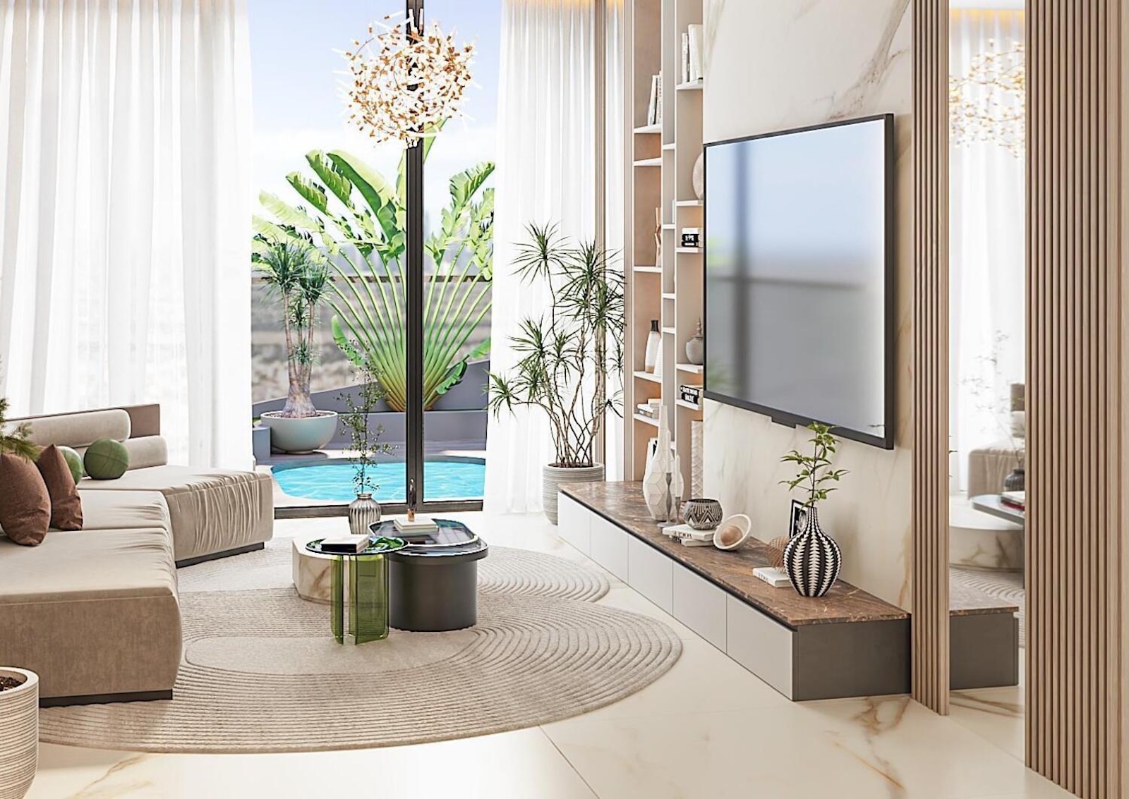 Инфраструктура комплекса: художественная студия, зона для барбекю, сигарный зал, клубный дом, коворкинг-пространство, игровая комната, тренажерный зал, крытый кинотеатр, открытый кинотеатр, бассейн на острове, детская игровая площадка, зона для медитации, йога на открытом воздухе, парк для домашних животных, сауна, паровая баня.