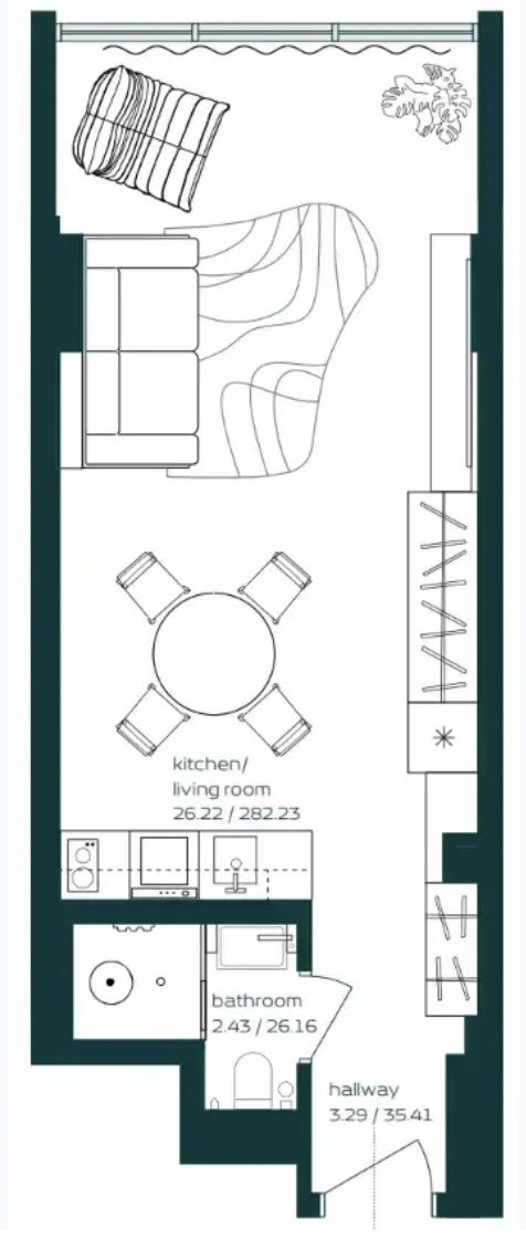 Базовая комплектация: интерьеры Arsenal Dubai отличаются изысканным сочетанием текстур и материалов, включая полированные бетонные поверхности, эффектные мраморные элементы и теплое многослойное освещение, усиливающее архитектурную атмосферу. Мебель, изготовленная на заказ, скульптурные элементы декора и яркие цветовые акценты способствуют созданию продуманной, современной обстановки. В проекте используется сочетание элегантной встроенной мебели, высококачественной отделки и выразительных художественных элементов.