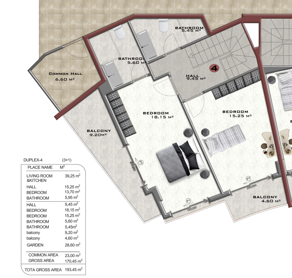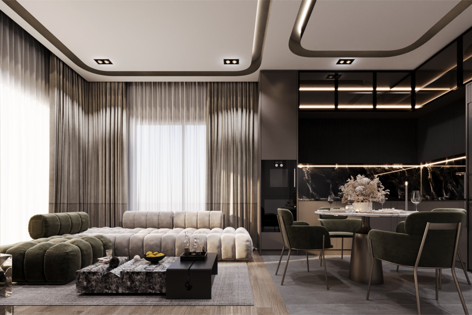 Базовая комплектация: гранитные полы 60×120, окна с двойным остеклением, лакированная кухонная мебель, душевая кабина из закаленного стекла, кухня из черного гранита, лакированные внутренние двери, раковина в ванной хилтон, стальная дверь.