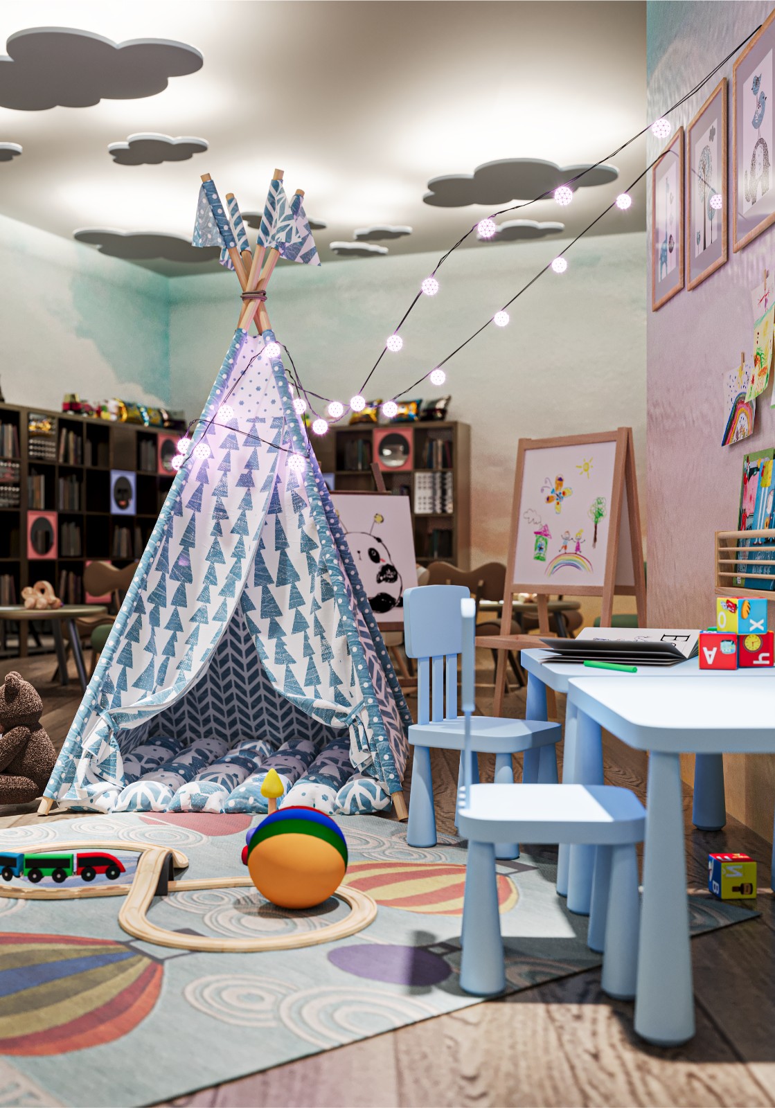 Инфраструктура комплекса: открытый бассейн, фитнес-салон, зал ожидания, детская игровая комната, зона барбекю, лобби, 7/24 служба безопасности, джакузи, парковка, хамам, зеленая зона, фитнес-салон, кинозал.