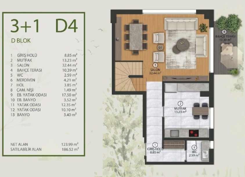 Площадь: от 187,7 до 236,7 кв.м. в зависимости от планировки.