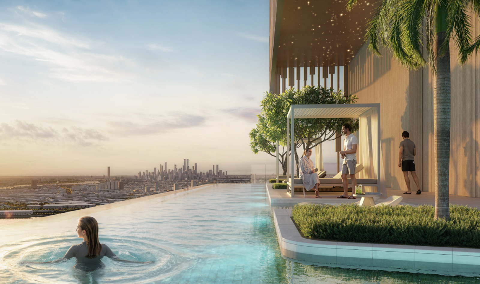 Инфраструктура комплекса: кино, лагуна Горизонт Эдж, открытый лаундж, площадка для барбекю, центр маленького исследователя, многоцелевой суд, библиотека «Гамак», зона HIIT-тренировок, бассейн Infinity Skyline, Sky Lounge.