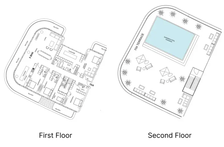 Инфраструктура комплекса: студия йоги, пространства для предприятий общественного питания, частные бассейны, бассейн, детская игровая площадка и бассейн, зоны отдыха, спортзал, саунаство.
