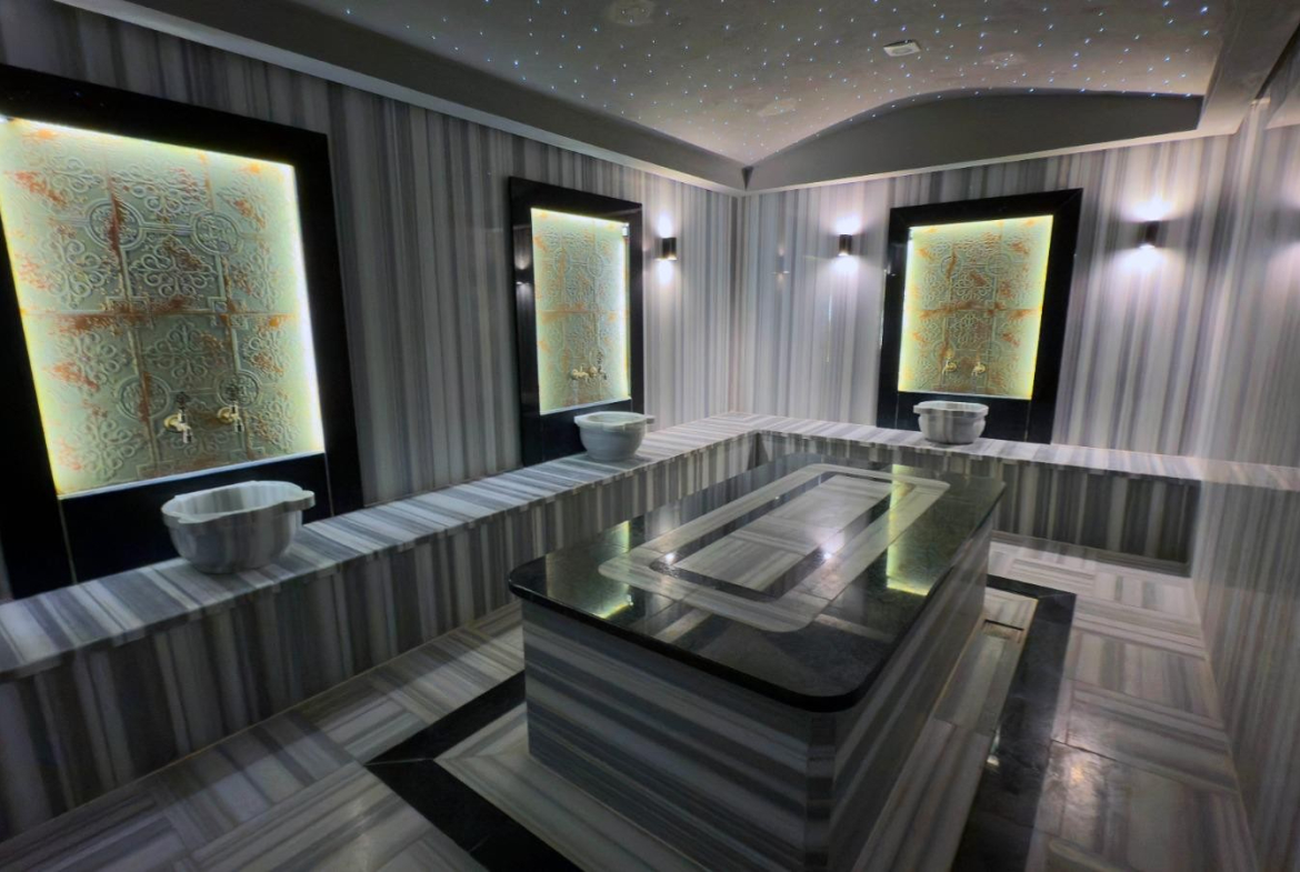 Инфраструктура комплекса: крытый и открытый бассейн, массажные кабинеты, сауна, паровая, турецкая баня, фитнес-центр, ресторан, кинотеатр и музыкальный зал, детская игровая комната и игровая комнат Play Station, настольный теннис, конференц-зал. Теннисный корт, открытая игровая площадка, открытые спортивные площадки.
