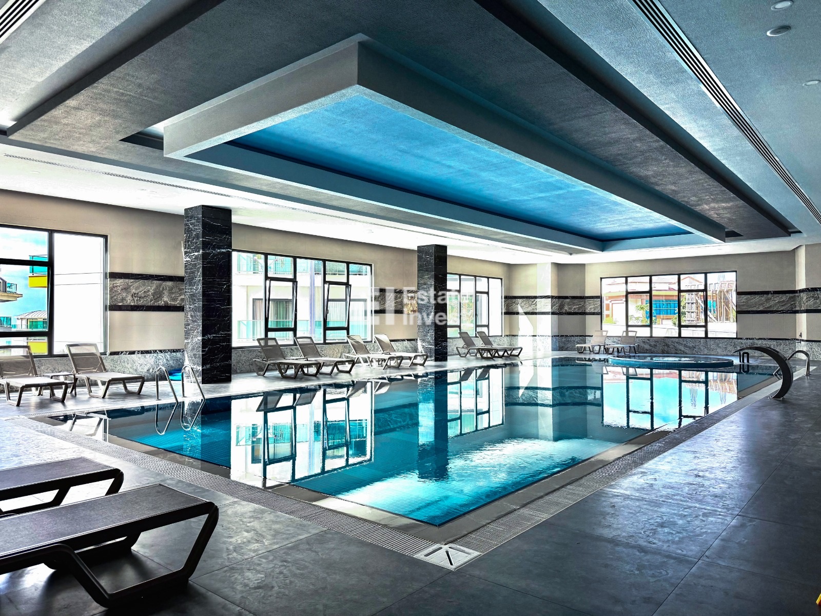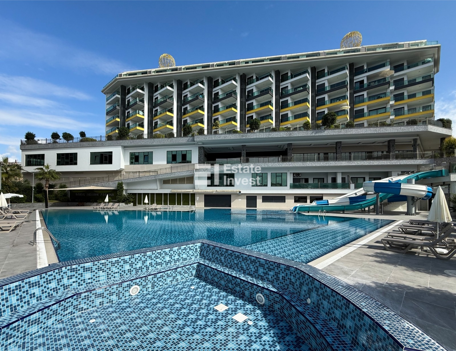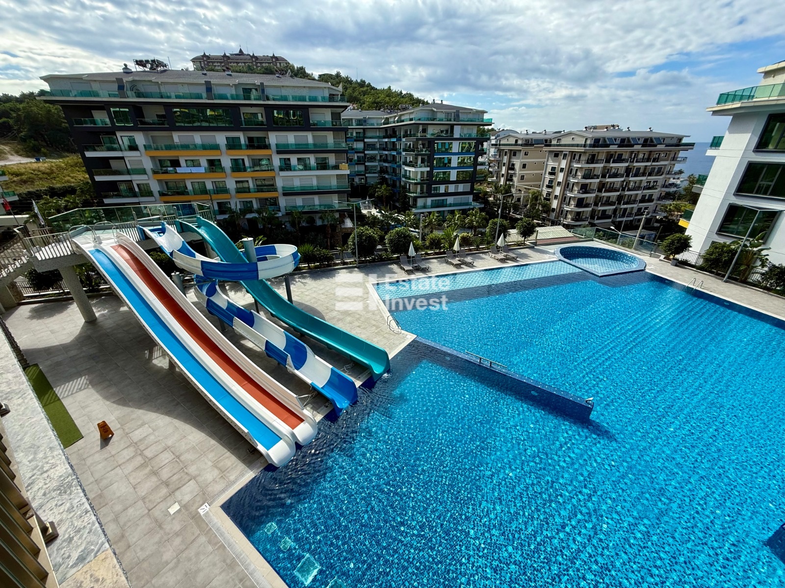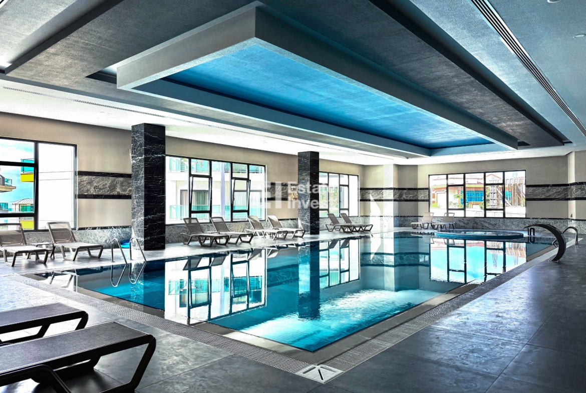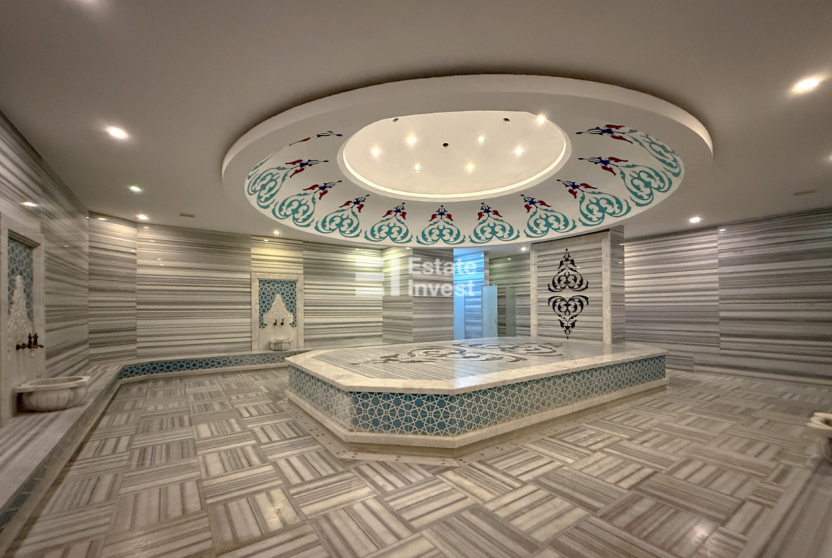Инфраструктура комплекса: собственный благоустроенный пляж с рестораном, самый большой инфинити бассейн в Алании, второй бассейн с детским аквапарком, зимний бассейн, хамам, теннисный корт, тренажёрный зал, зона барбекю, детские площадки, закрытая охраняемая территория.