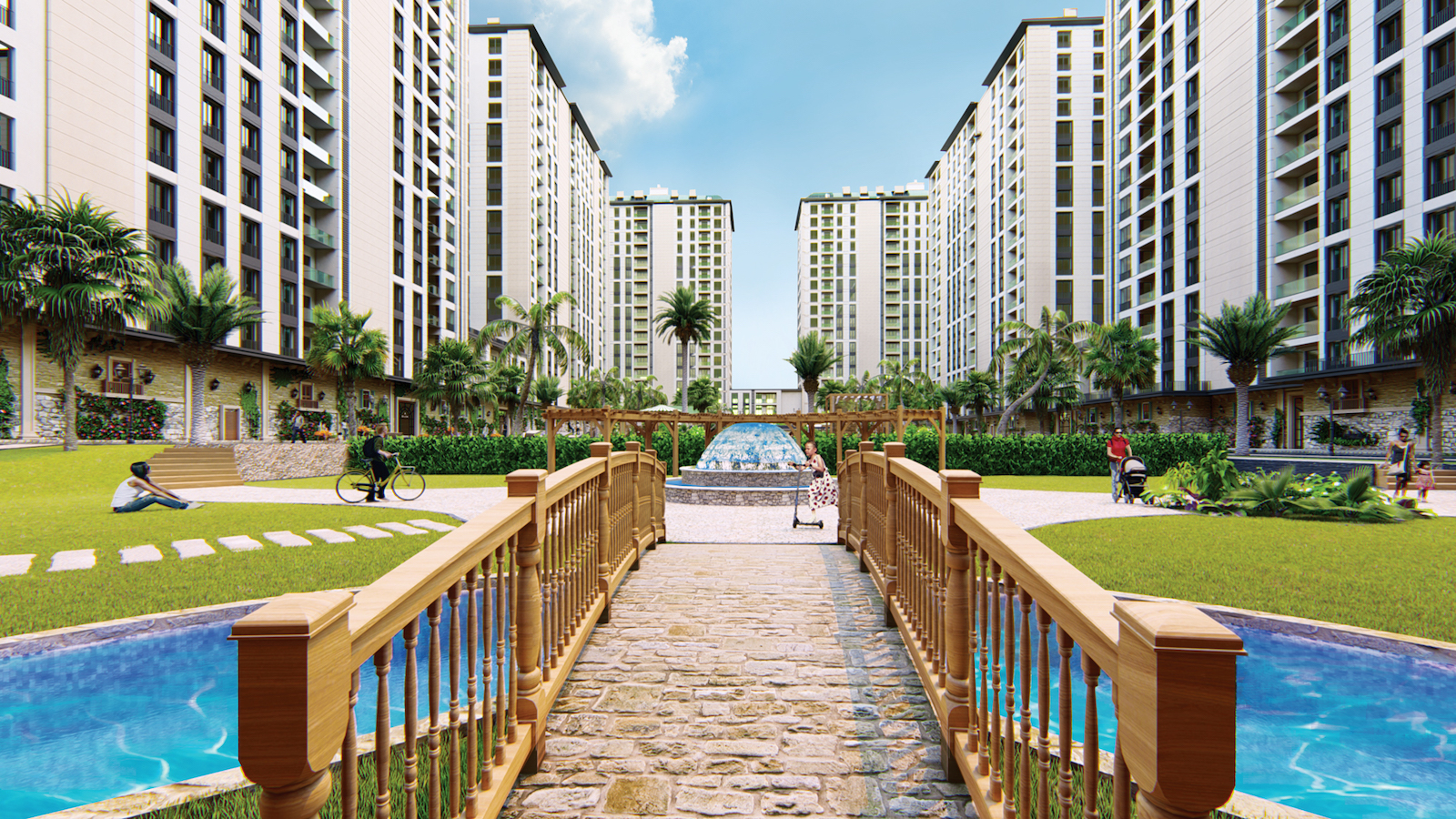 Инфраструктура комплекса: игровые и развлекательные зоны, крытый и открытый бассейны, фитнес-зал, зал для йоги и пилатеса, кафетерии, художественные мастерские, детские игровые площадки, беговые дорожки, велосипедная дорожка, поле для мини-гольфа.